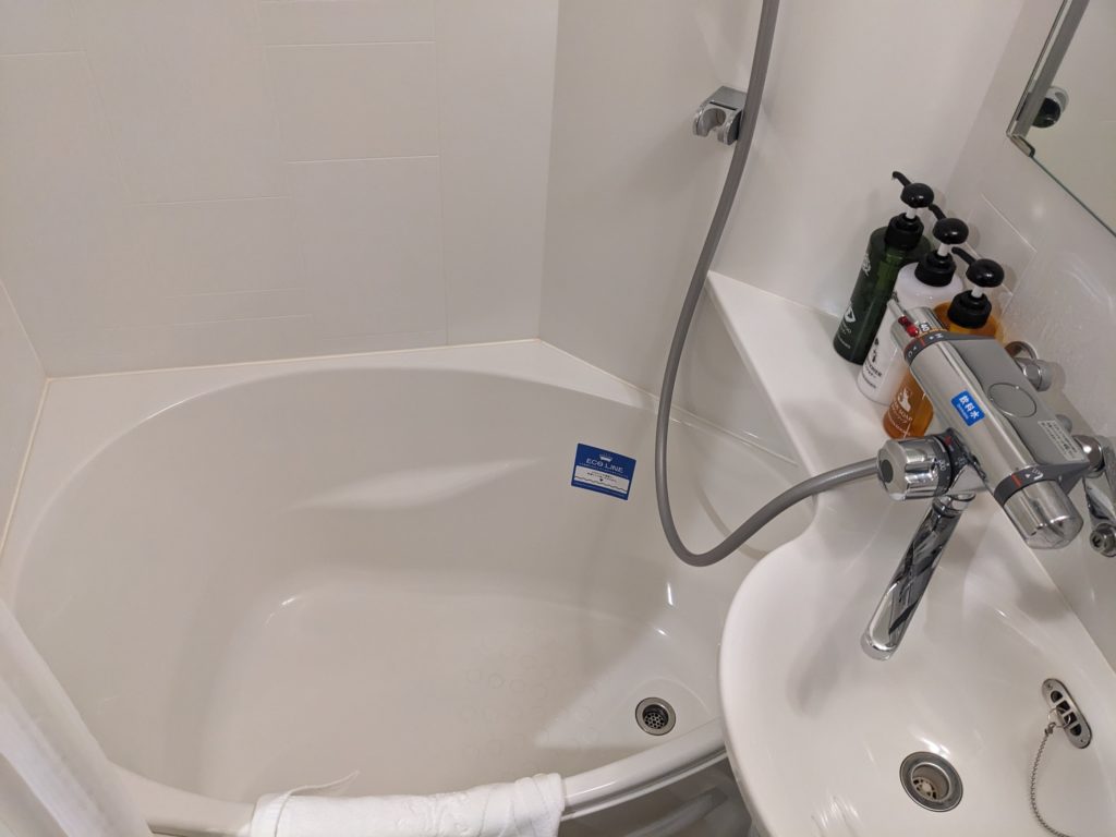 店舗によって作りは微妙に違うかもしれませんが、このときに泊まったアパホテル&リゾート新潟駅前大通は狭さは感じませんでした。