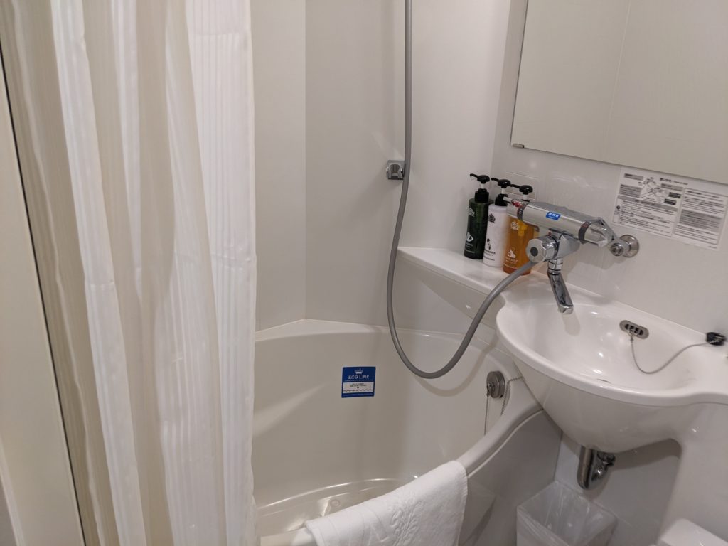 おそらく他のアパホテルの店舗でもシングルルームの水回りは同じような作りになっていると思います。