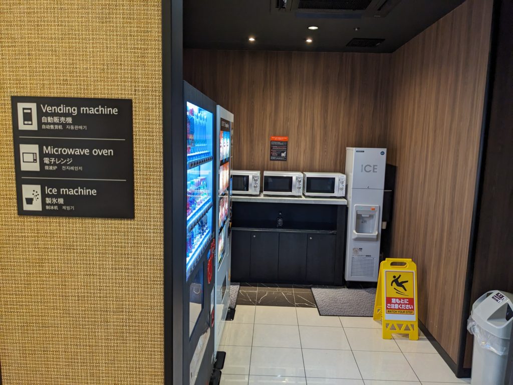 2階には製氷機2台と電子レンジ3台と自販機があります。